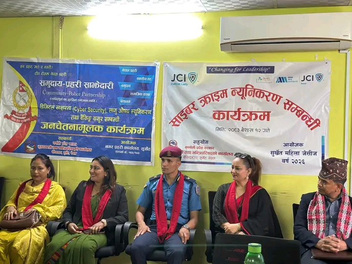 • सुर्खेतमा साइबर अपराध न्यूनीकरण सम्बन्धी एक दिने सचेतना कार्यक्रम सम्पन्न