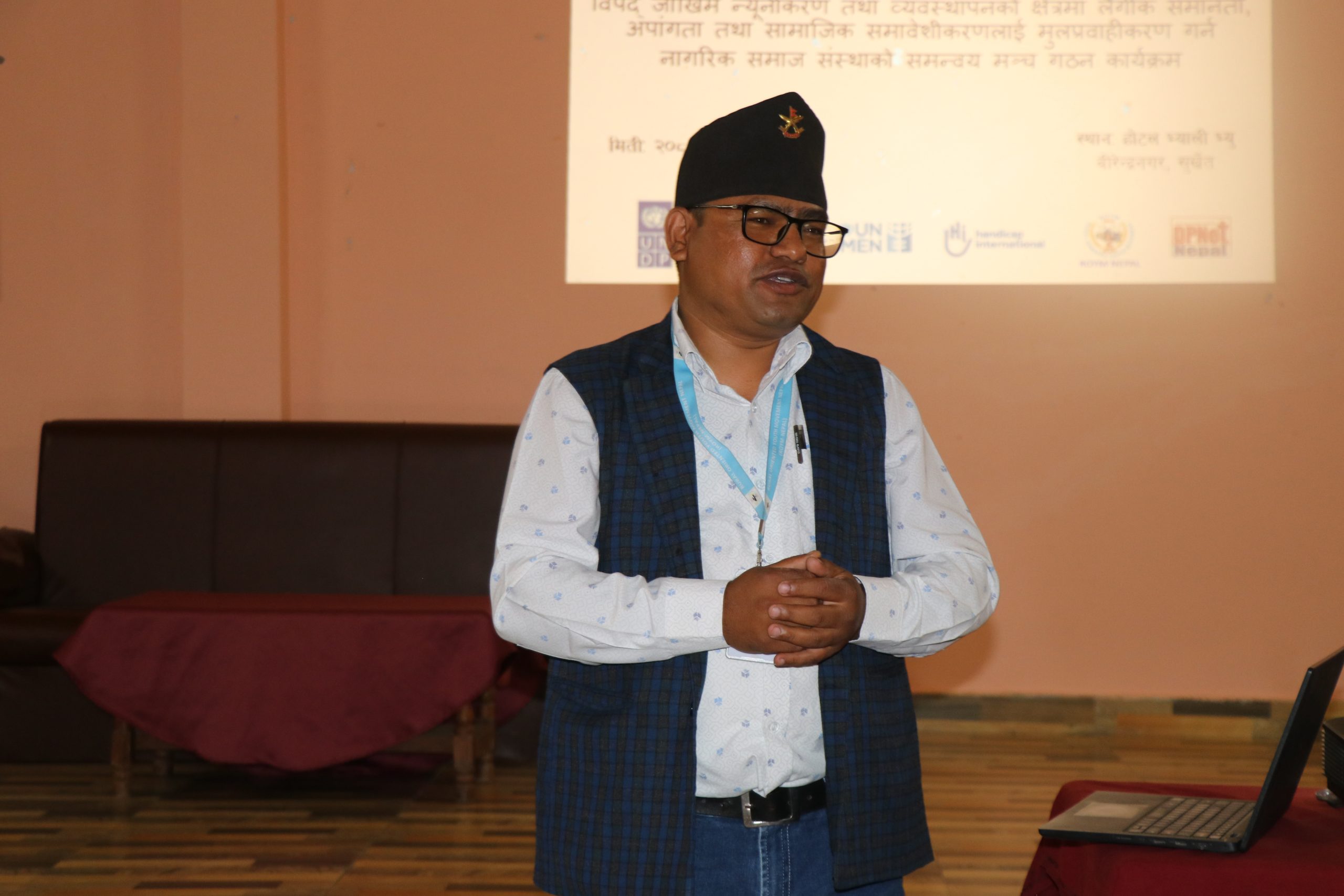 सुर्खेत । कर्णाली प्रदेशमा विपद् जोखिम न्यूनीकरण तथा व्यवस्थापन (DRRM)लाई लैङ्गिक समानता, अपाङ्गता तथा सामाजिक समावेशीकरण (GEDSI) सँग जोड्दै प्रभावकारी बनाउन नागरिक समाज संस्था प्लेटफर्म गठन गरिएको छ।