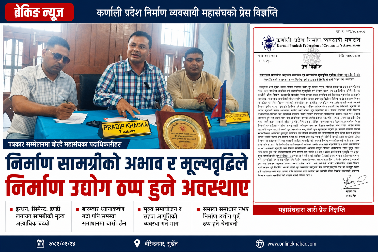 कार्यक्रममा उद्योग वाणिज्य महासङ्घ कर्णाली प्रदेश अध्यक्ष पदबहादुर शाही, उद्योग वाणिज्य सङ्घ सुर्खेतका अध्यक्ष लक्ष्मण कँडेल, चेम्बर अफ कमर्स सुर्खेतका अध्यक्ष चिन्तामणि कँडेललगायत विभिन्न क्षेत्रमा कार्यरत उद्योग व्यवसायीले कर्णालीको पानी, खानी, विद्युत्, पूर्वाधार, कृषि, पर्यटन, खेल, जडीबुटी, सडक, शिक्षा, स्वास्थ्यलगायतका क्षेत्रको विकास हुनेगरी आगामी आवको नीति तथा कार्यक्रम ल्याउन सुझाउनुभएको थियो ।